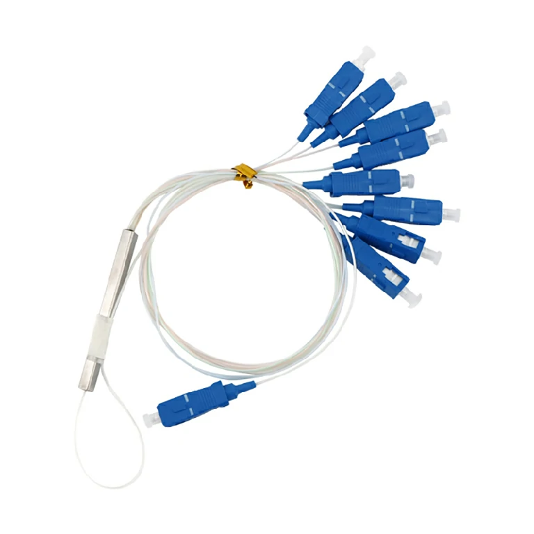Planar Lightwave Circuit (PLC) optical splitter is an integrated waveguide optical power distribution device based on quartz substrate. It is one of the most important passive devices in fiber optic links, a fiber optic convergence device with multiple input ends and multiple output ends, especially suitable for connecting central office and terminal equipment in passive optical networks (EPON, GPON, BPON, etc.) and realizing optical signal splitting. The micro steel tube type splitter is the primary packaging of the splitter, which may be re-packaged into subrack type, plug-in type, tray type, etc., or used in any optical network termination box.